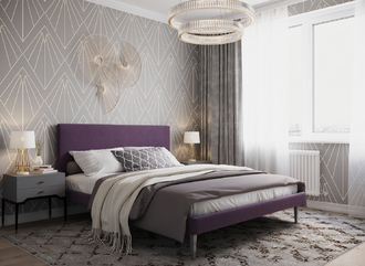Кровать MOON FAMILY 1256 демонстрирует безупречный баланс изящных пропорций. Лаконичное изголовье, узкие царги и высокие опоры создают эффектный образ, привносящий в пространство спальни стильный и яркий акцент.