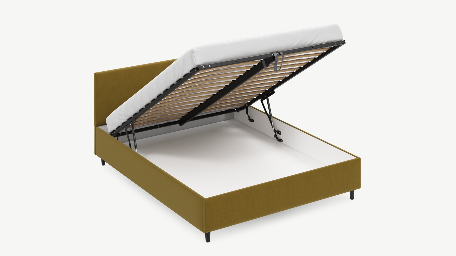 - Скрытая под основанием вместительная емкость без внутренних перегородок позволяет использовать всю площадь подкроватного пространства для хранения вещей.