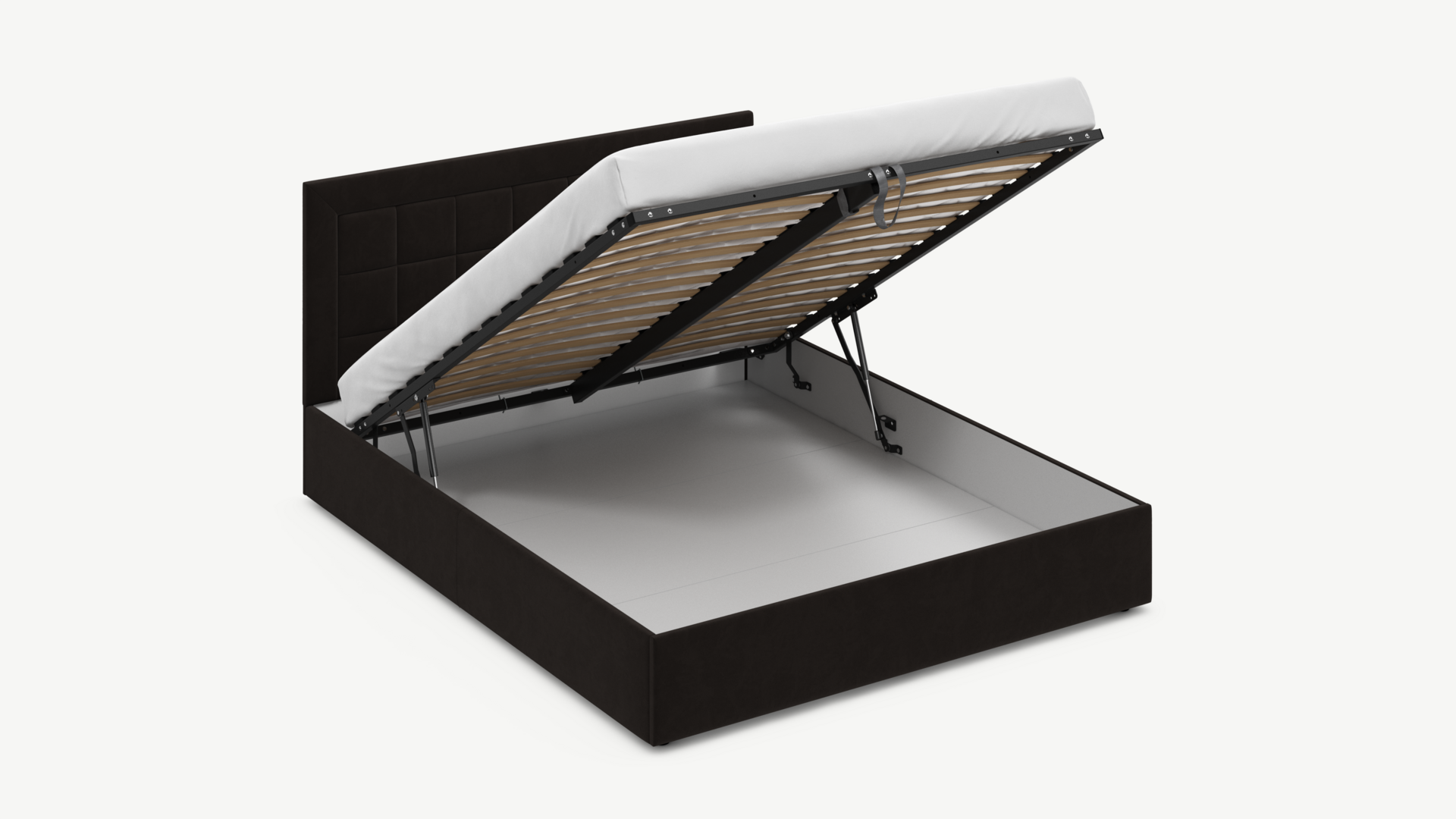 - Скрытая под основанием вместительная емкость без внутренних перегородок позволяет использовать всю площадь подкроватного пространства для хранения вещей.
