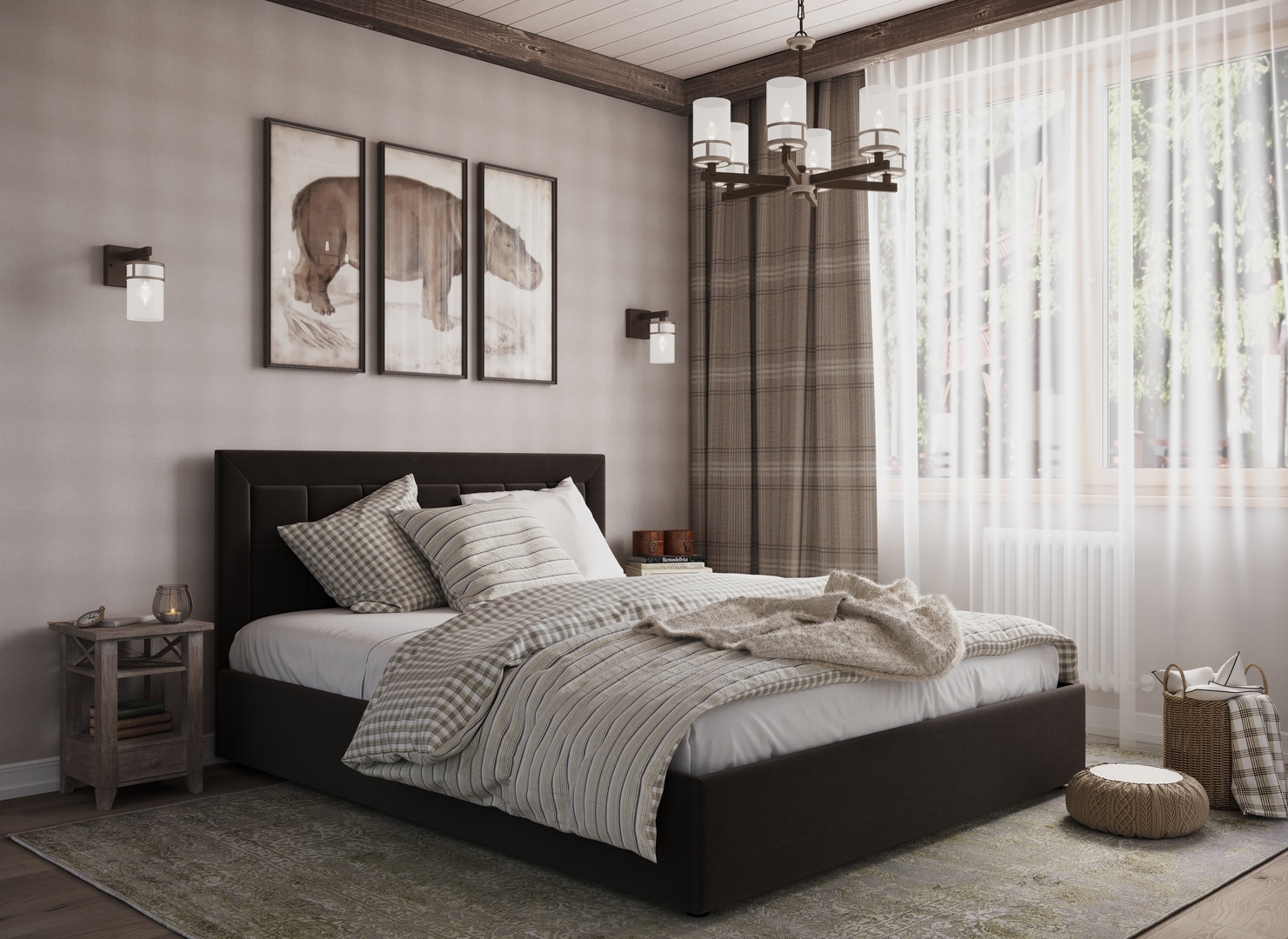 Стежка помещена в центр изголовья и обрамлена, словно картина. Объемные царги становятся гармоничным дополнением образа и завершают цельную фигуру кровати.