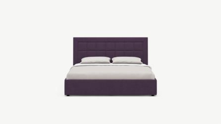 Изголовье декорировано рельефным рисунком стежки в крупный квадрат, получившим особую фактуру за счет глубины шва.