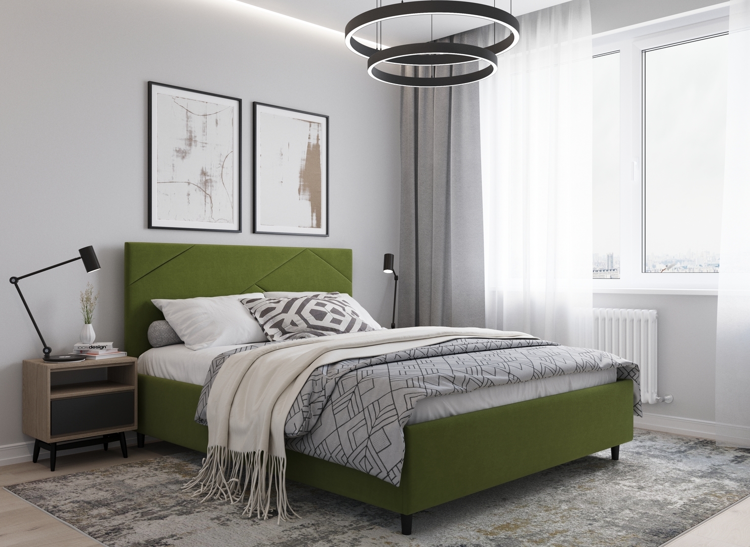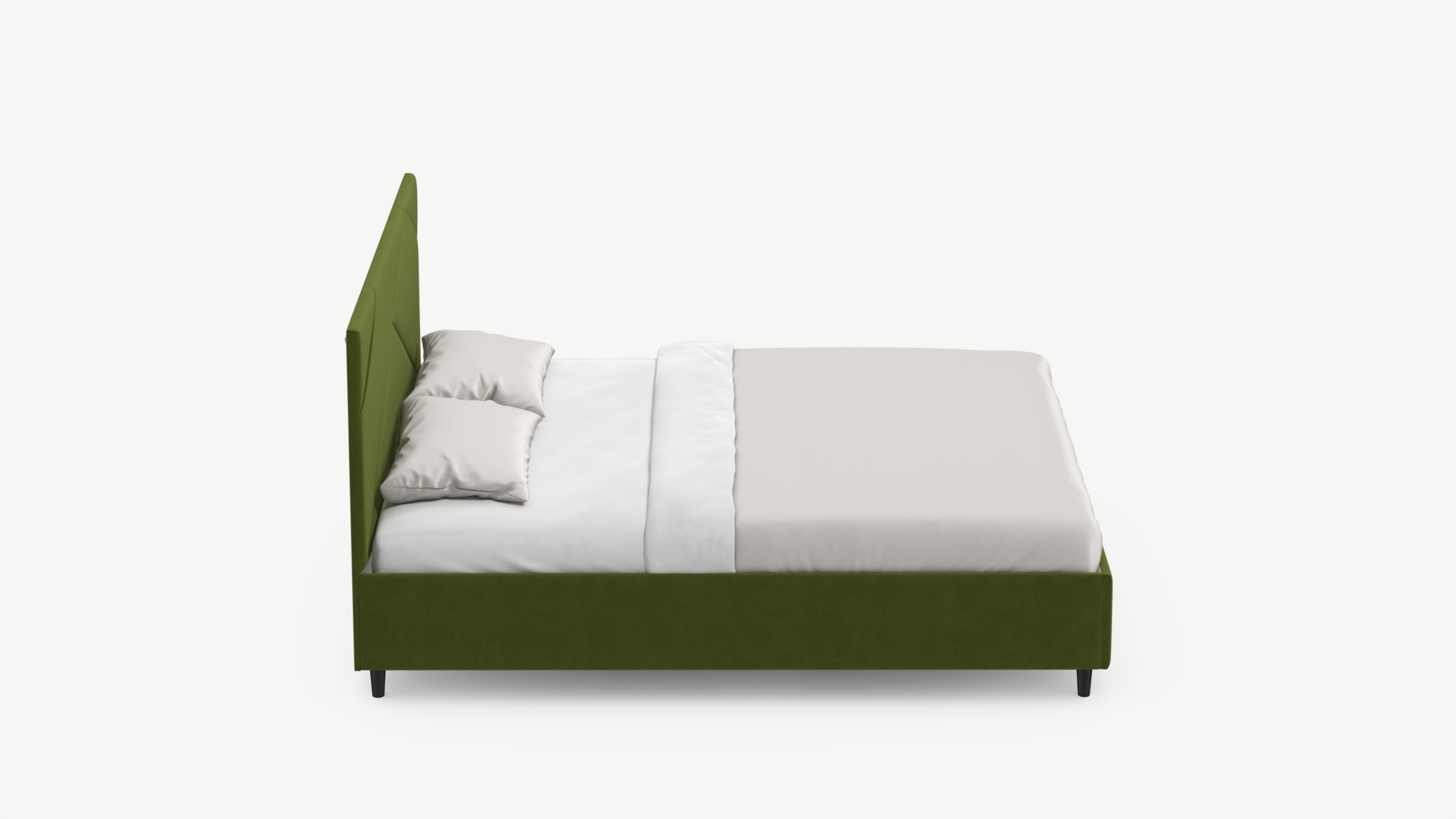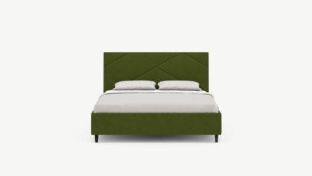 MOON FAMILY 1257 привлекает внимание оригинальным исполнением: широкие полосы ткани эффектно пересекают периметр изголовья, создавая на нем графический орнамент. Лаконичные формы объемных царг создают единый гармоничный образ и фокусируют внимание на центральном текстурном элементе кровати.