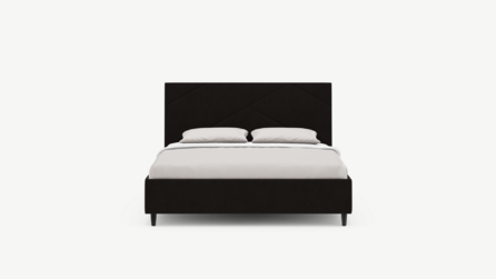 MOON FAMILY 1257 привлекает внимание оригинальным исполнением: широкие полосы ткани эффектно пересекают периметр изголовья, создавая на нем графический орнамент. Лаконичные формы объемных царг создают единый гармоничный образ и фокусируют внимание на центральном текстурном элементе кровати.