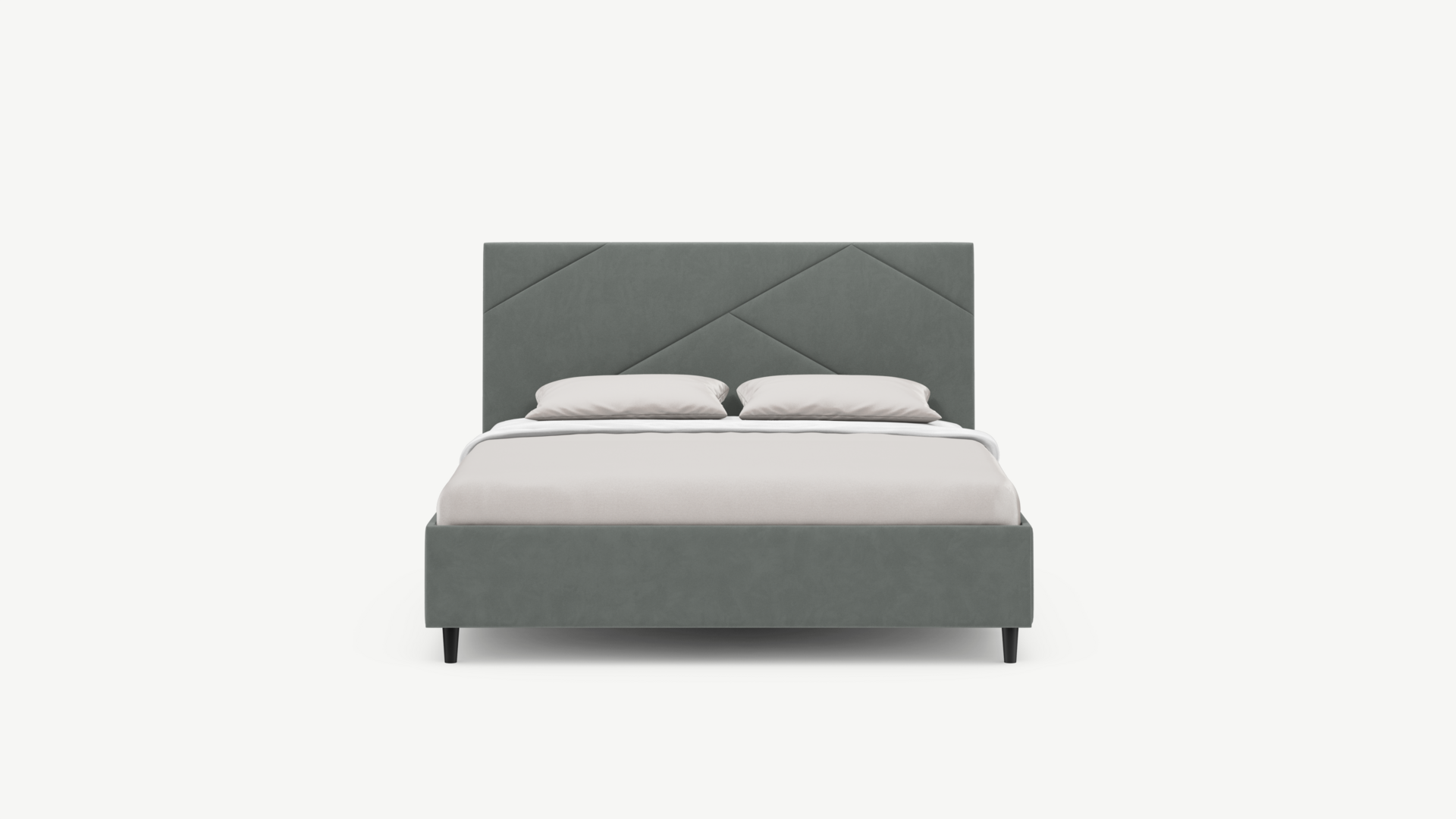 MOON FAMILY 1257 привлекает внимание оригинальным исполнением: широкие полосы ткани эффектно пересекают периметр изголовья, создавая на нем графический орнамент. Лаконичные формы объемных царг создают единый гармоничный образ и фокусируют внимание на центральном текстурном элементе кровати.