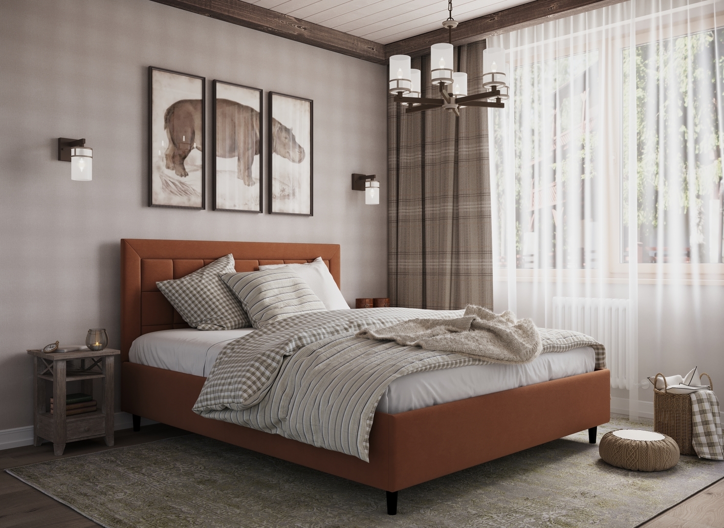 Стежка помещена в центр изголовья и обрамлена, словно картина. Объемные царги становятся гармоничным дополнением образа и завершают цельную фигуру кровати.