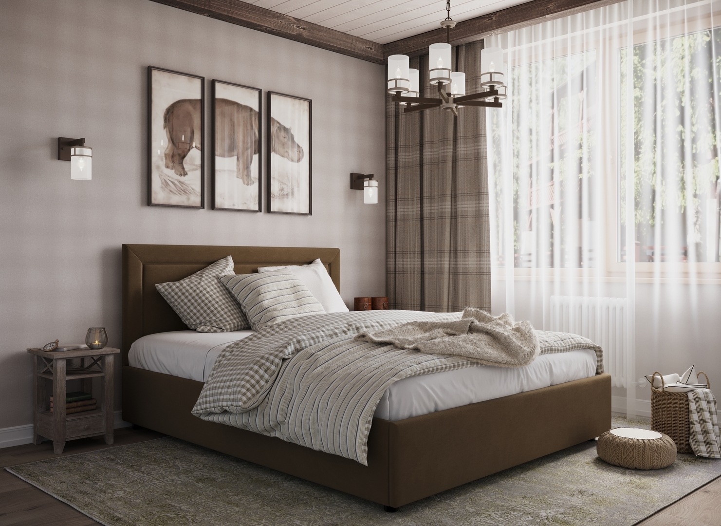 Создать гармоничный интерьер и завершить образ спальни помогут дополнительные аксессуары, например: тумбы, банкетки, подушки.