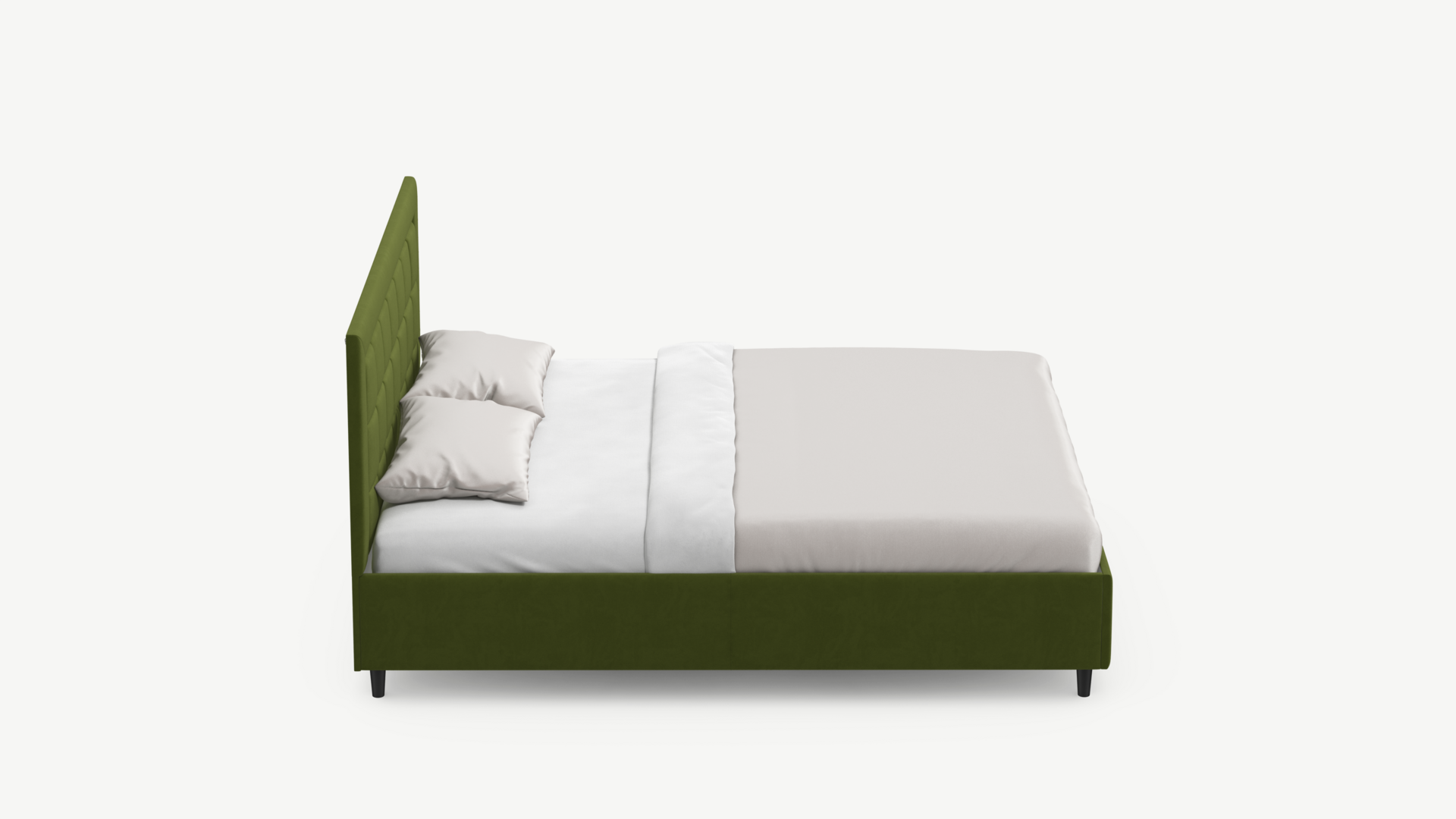 Изголовье декорировано рельефным рисунком стежки в крупный квадрат, получившим особую фактуру за счет глубины шва.