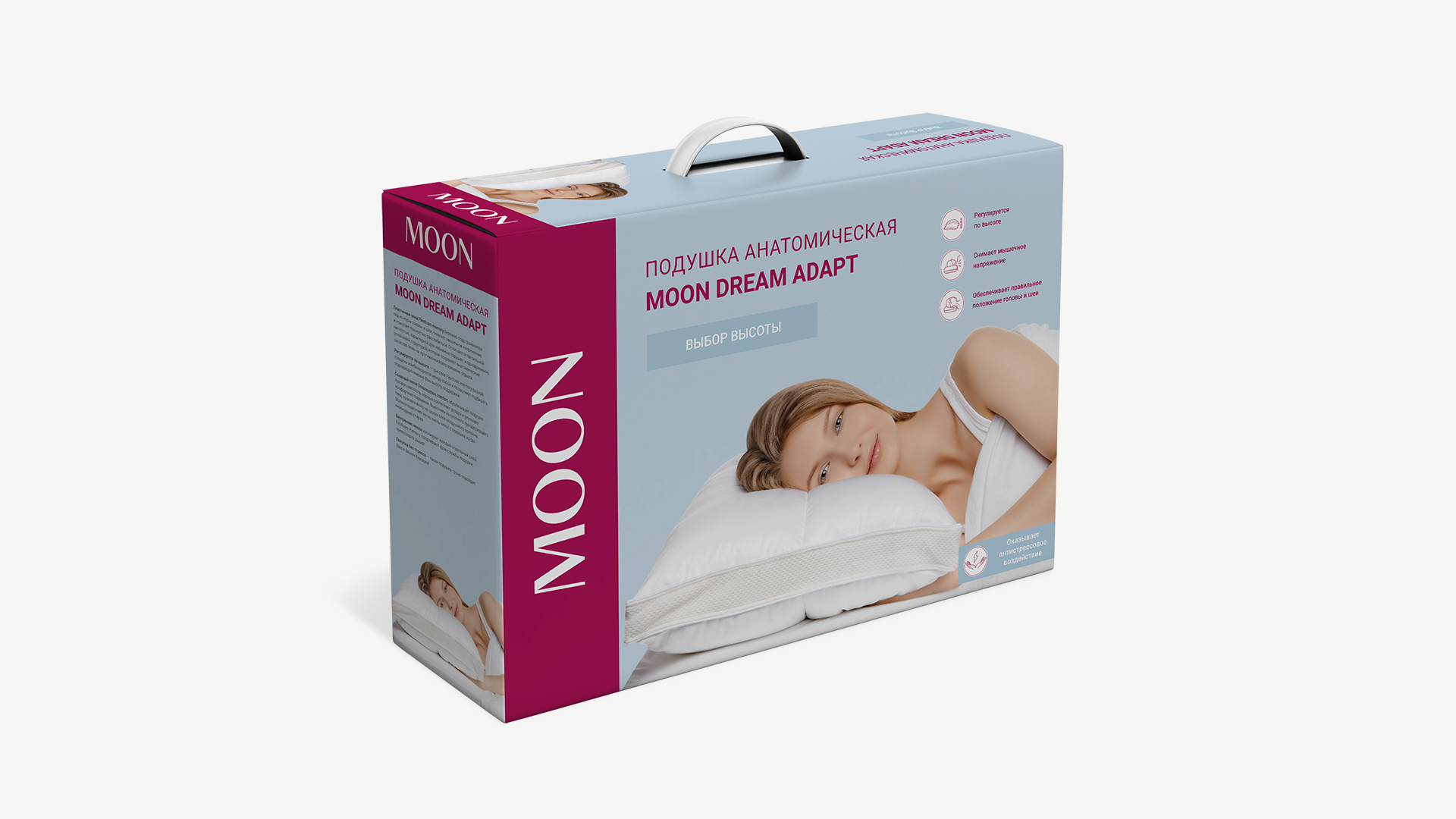 Анатомическая подушка MOON DREAM ADAPT позволяет самостоятельно регулировать ее высоту и настраивать подходящий именно Вам уровень поддержки!