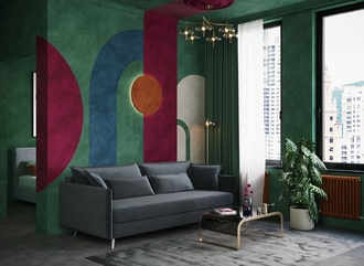 Механизм трансформации «Пантограф» подходит для ежедневного использования. Позволяет легко раскладывать и складывать диван, обеспечивая минимальный контакт дополнительных опор с напольным покрытием. Диван стоит на основных опорах, в то время как дополнительные остаются скрытыми, появляясь плавно и бесшумно в единственно нужный момент — при трансформации дивана в кровать.