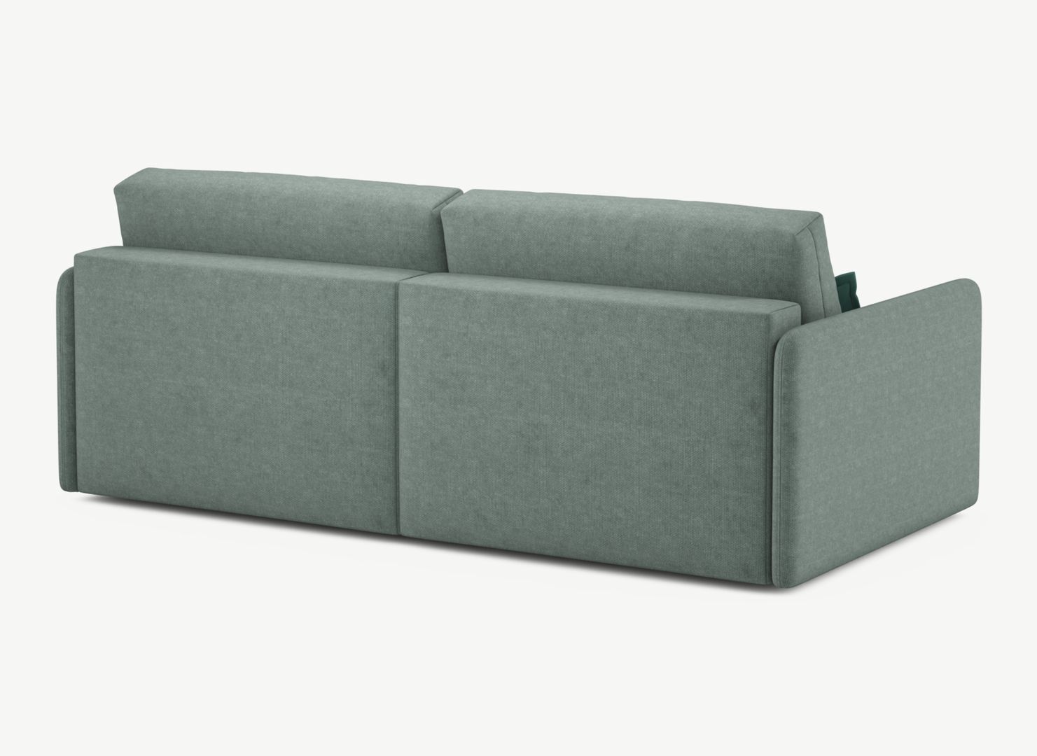 Красивый вид дивана со всех сторон. Спинка дивана, полностью облицованная обивочным материалом, придает изделию эстетичный внешний вид, завершает его образ и позволяет ставить диван в центре комнаты и/или зонировать пространство.