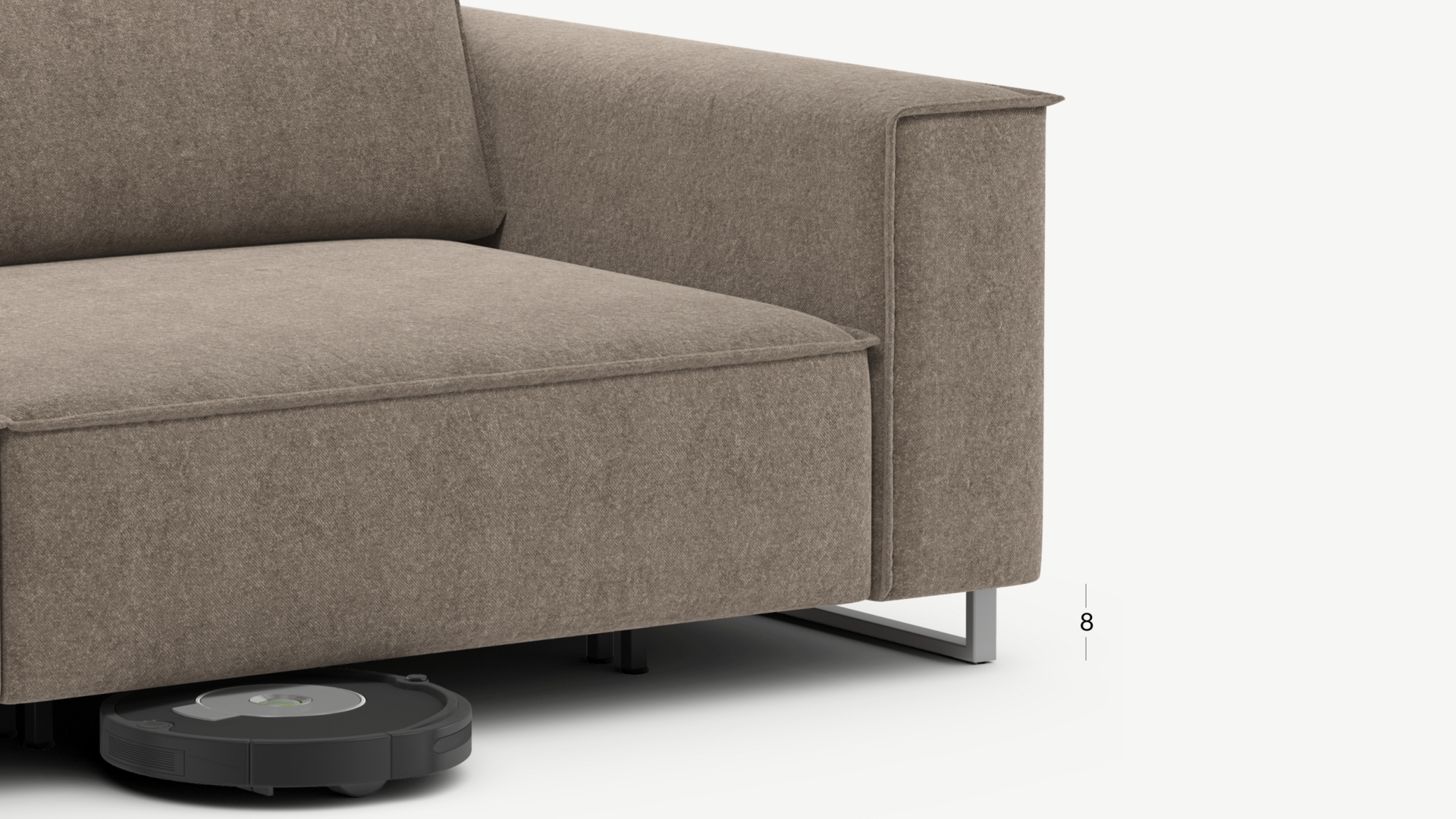 Благодаря высоким прямоугольным опорам под диваном проходит робот-пылесос и легко проводится влажная уборка, что обеспечивает чистоту и порядок в доме (при отсутствии бельевого короба под диванной секцией). Опоры представлены в четырех стандартных цветах на Ваш выбор: Графит, Серебро, Беж и Шоколад. Возможность выбора цвета позволяет создать максимально гармоничный интерьер.