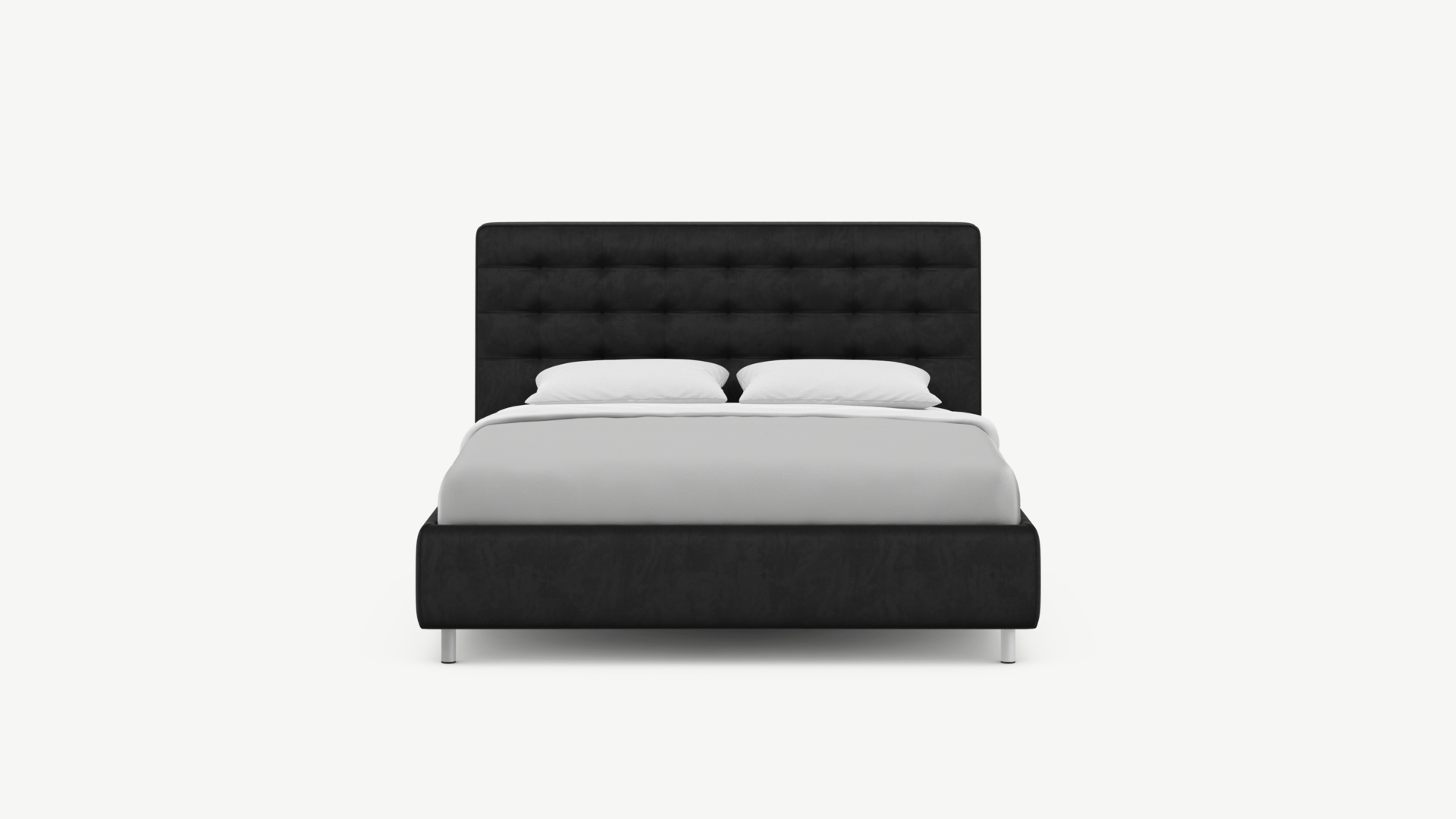 Оформите образ кровати, выбирая обивочный материал, который подчеркнет звучание Вашей спальни и отразит Ваш вкус. Обратите внимание на однотонный гладкий велюр, который усиливает объемную фактуру стежки.