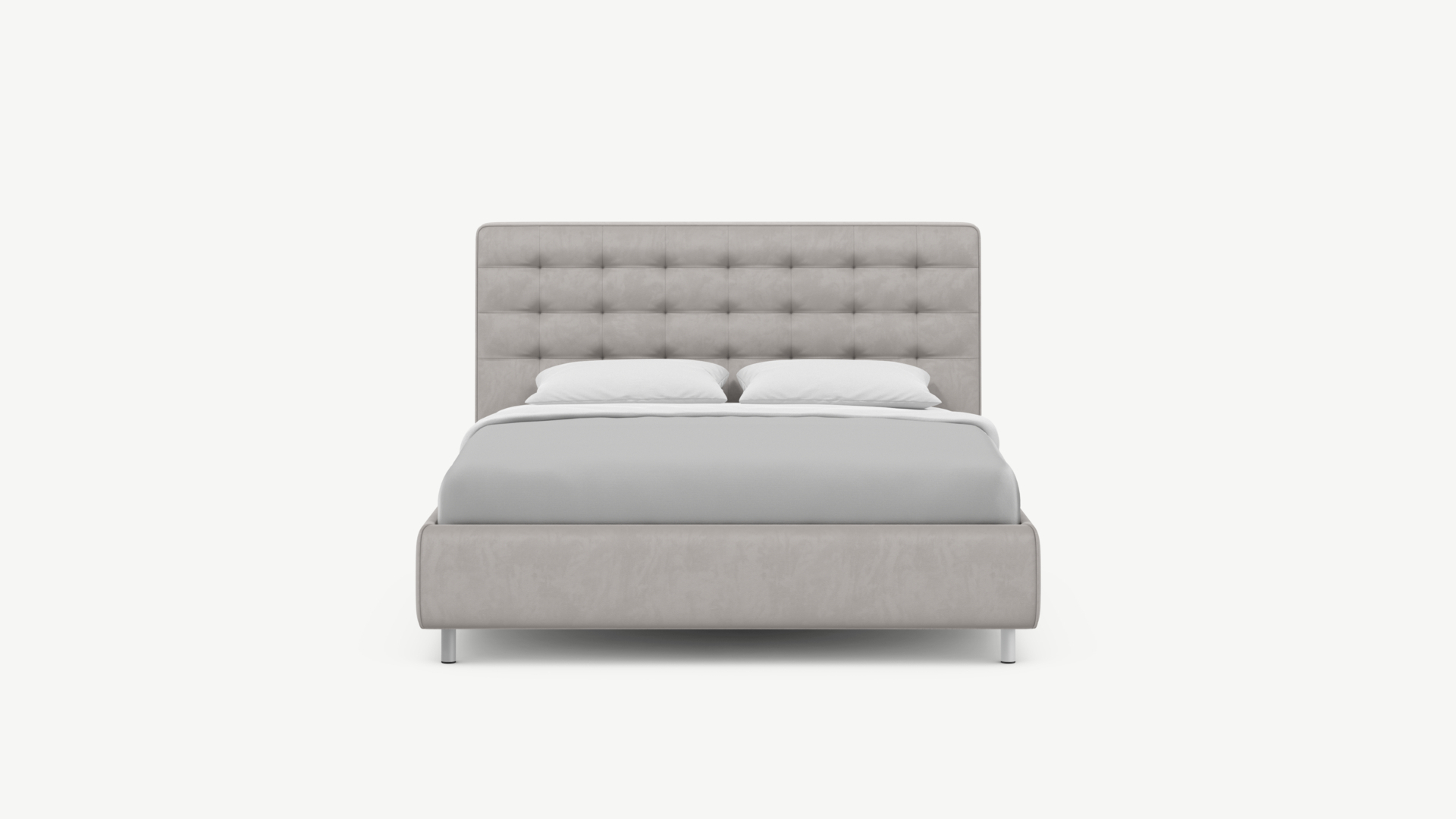 Оформите образ кровати, выбирая обивочный материал, который подчеркнет звучание Вашей спальни и отразит Ваш вкус. Обратите внимание на однотонный гладкий велюр, который усиливает объемную фактуру стежки.