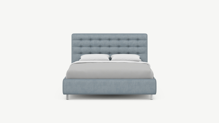 Оформите образ кровати, выбирая обивочный материал, который подчеркнет звучание Вашей спальни и отразит Ваш вкус. Обратите внимание на однотонный гладкий велюр, который усиливает объемную фактуру стежки.