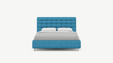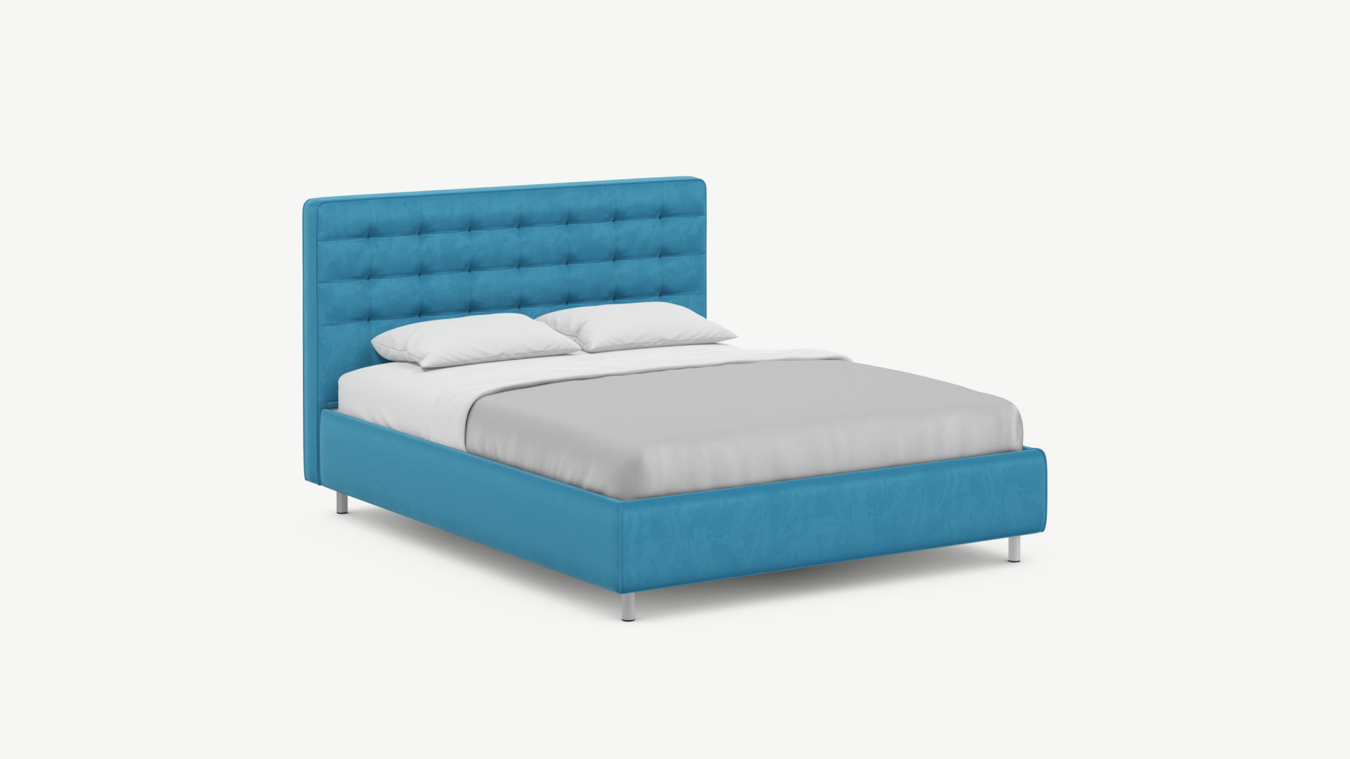 Заказали кровать с подушками-валиками, очень необычный дизайн нам показался. Выбрали высокие опоры для удобства в уборке, а изголовье не стали брать высокое, больше понравился низкий вариант. Приятно, что в магазине большой выбор тканей и цветов. Мы выбрали яркий бирюзовой, в нашей комнате кровать выглядит просто потрясающе! Кровать стала ярким акцентом. Это очень круто, что компания дает возможность сделать интерьер таким, как хочется. По качеству также нет претензий. Обита ровно, ни складок не, ни неровностей. Ламели ровные, матрас на них лежит идеально. Мы остались довольны, всем рекомендуем к покупке.