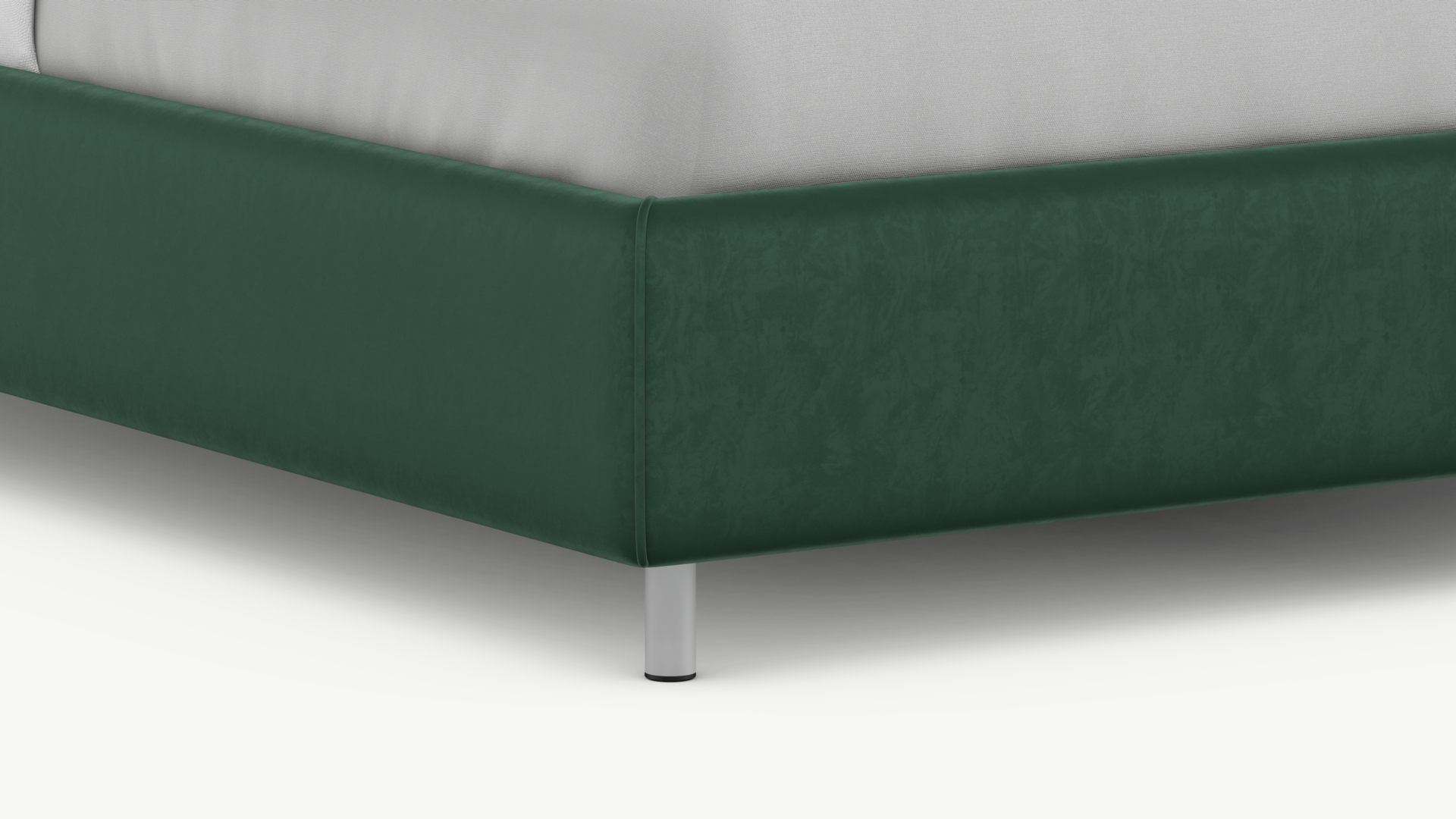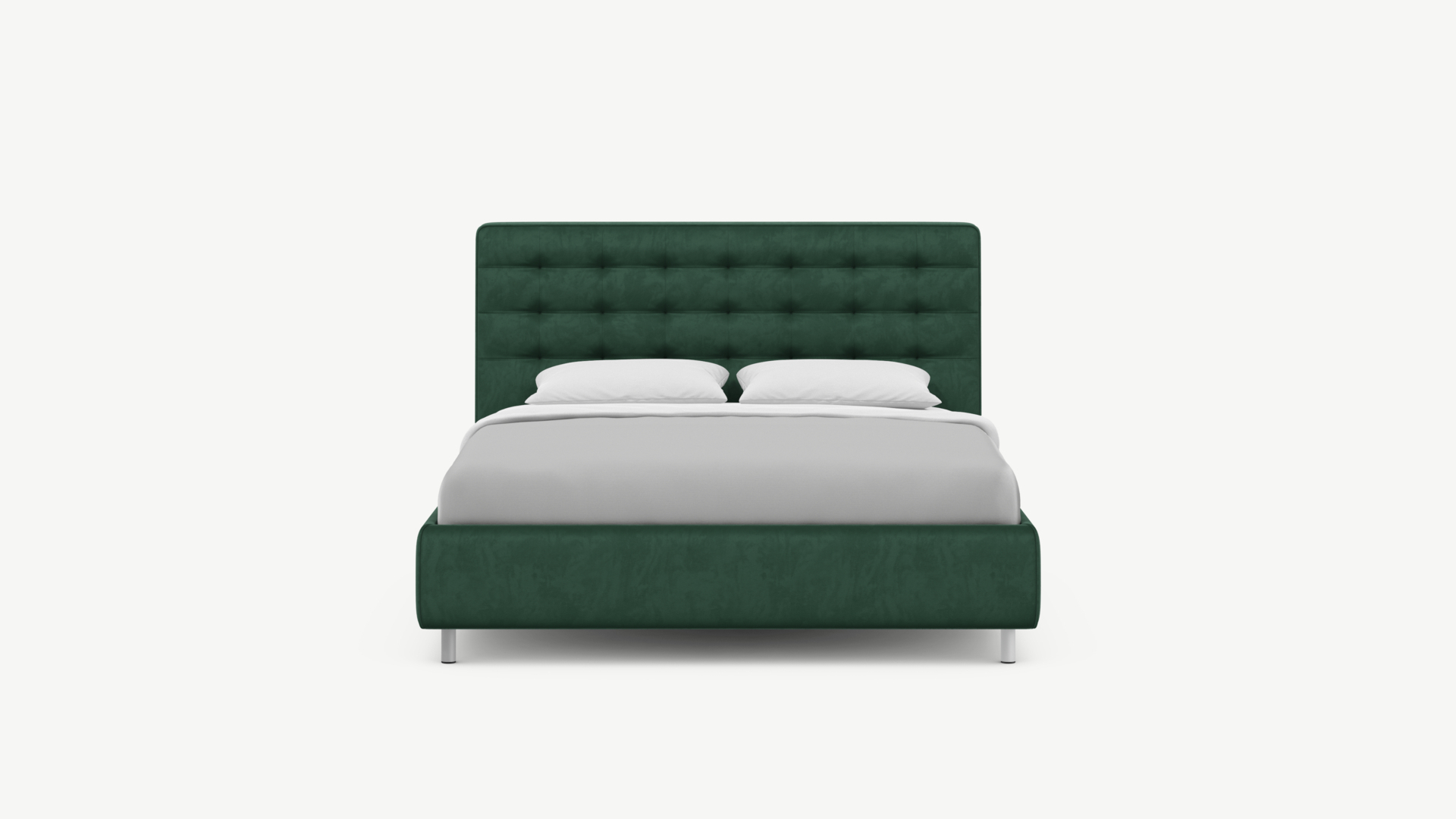 Оформите образ кровати, выбирая обивочный материал, который подчеркнет звучание Вашей спальни и отразит Ваш вкус. Обратите внимание на однотонный гладкий велюр, который усиливает объемную фактуру стежки.