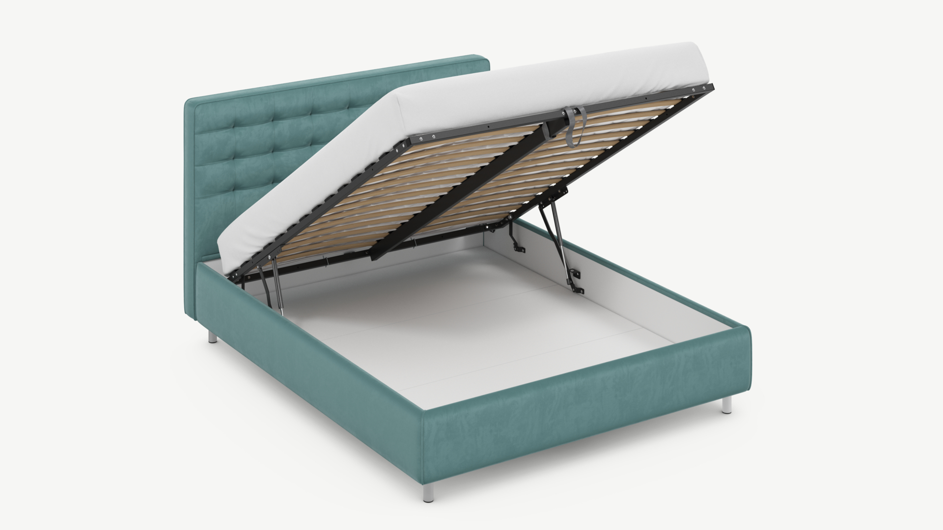 • Скрытая под основанием вместительная емкость без внутренних перегородок позволяет использовать всю площадь подкроватного пространства для хранения вещей.