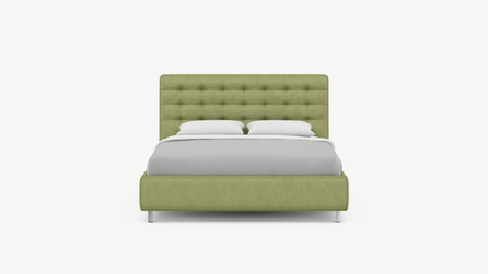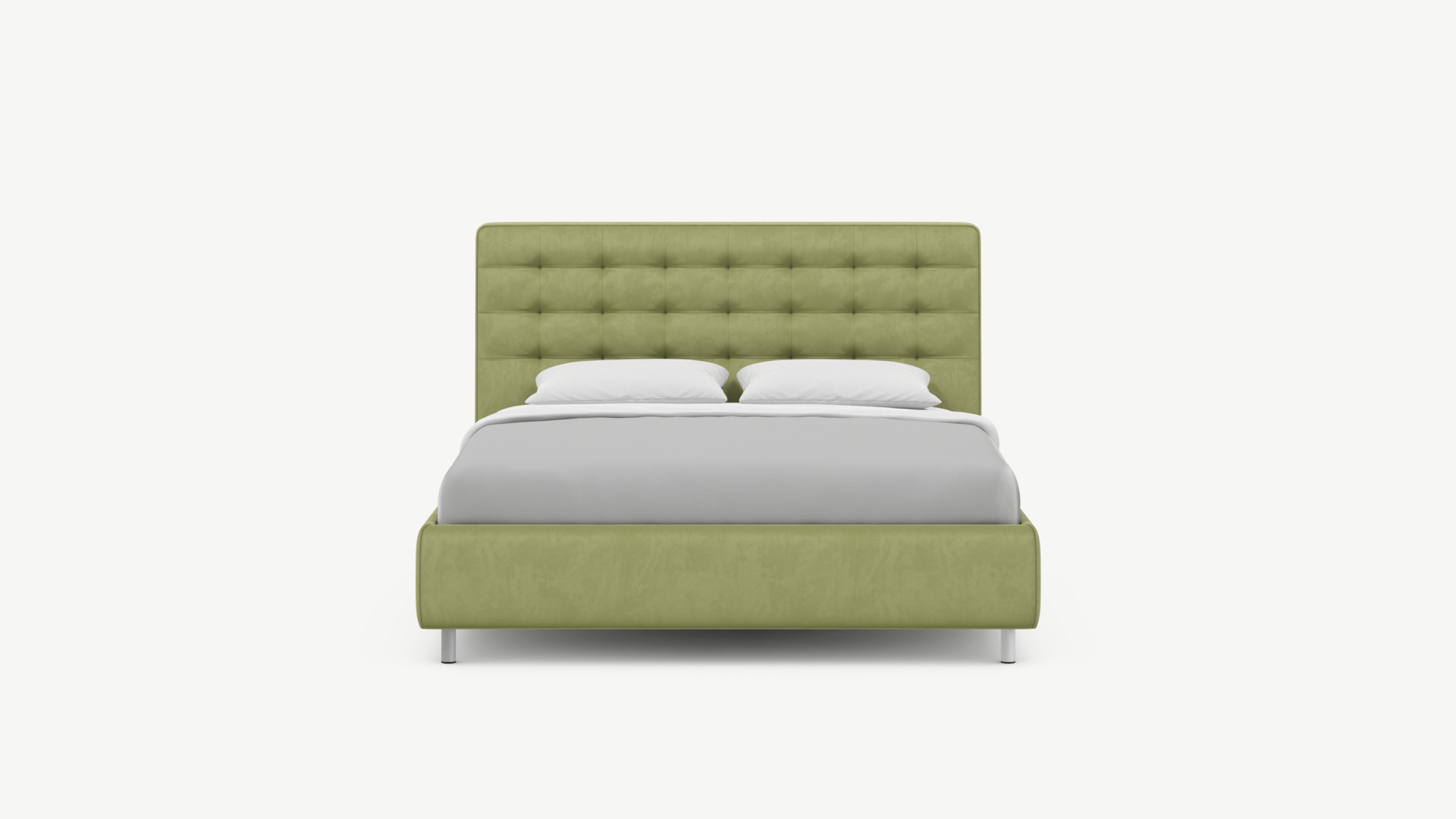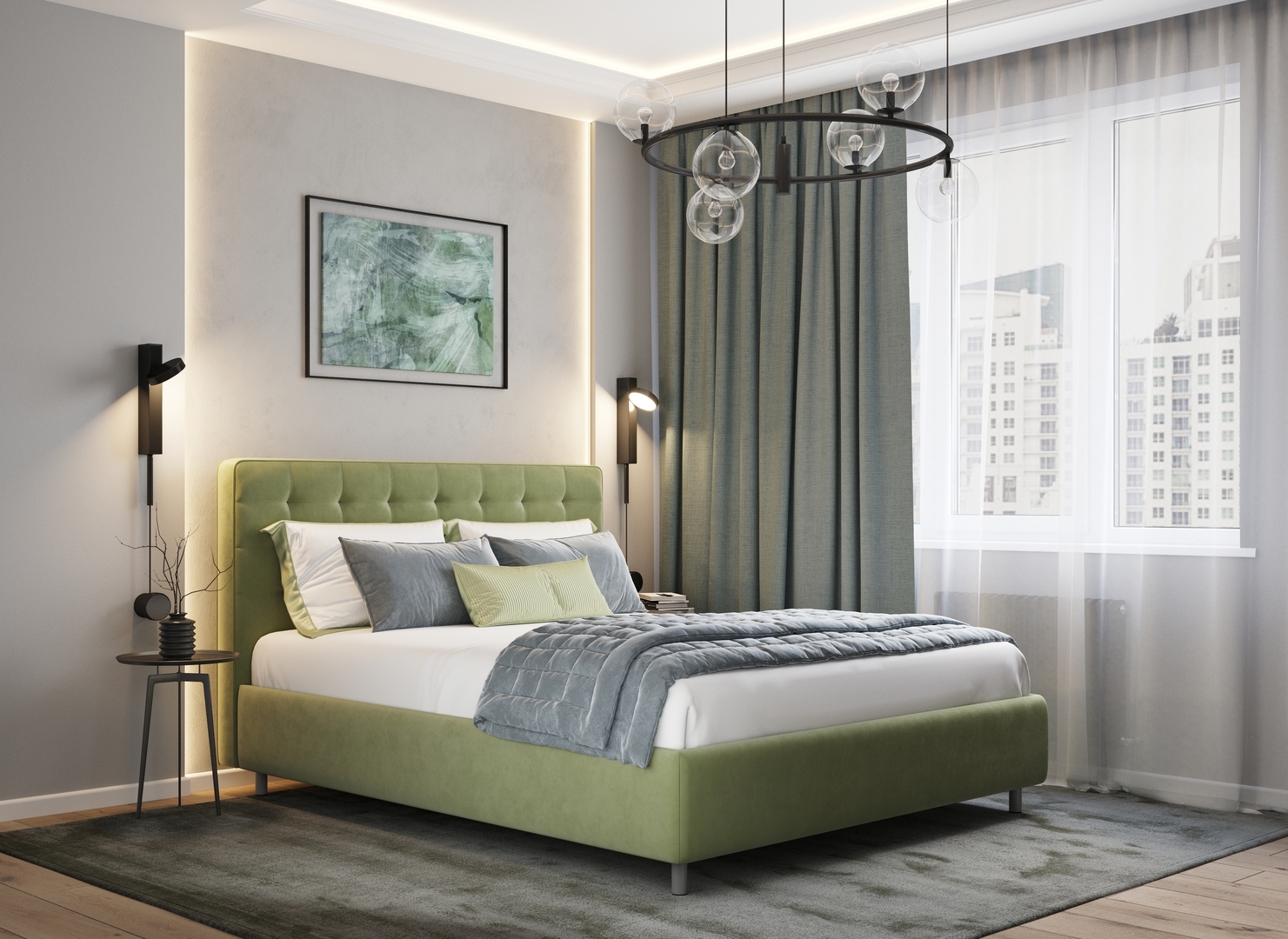 Оформите образ кровати, выбирая обивочный материал, который подчеркнет звучание Вашей спальни и отразит Ваш вкус. Обратите внимание на однотонный гладкий велюр, который усиливает объемную фактуру стежки.