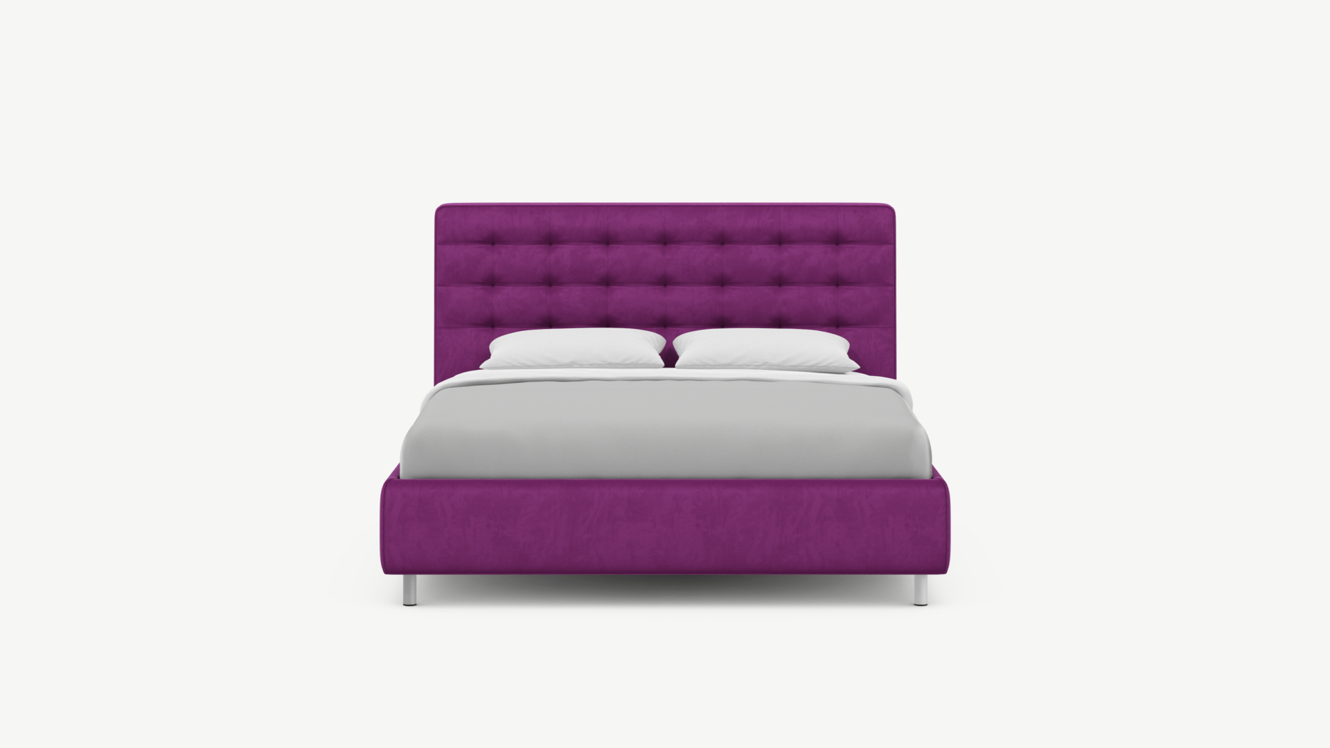 Оформите образ кровати, выбирая обивочный материал, который подчеркнет звучание Вашей спальни и отразит Ваш вкус. Обратите внимание на однотонный гладкий велюр, который усиливает объемную фактуру стежки.