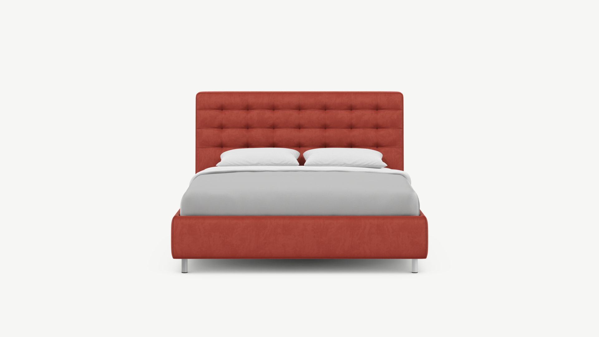 Оформите образ кровати, выбирая обивочный материал, который подчеркнет звучание Вашей спальни и отразит Ваш вкус. Обратите внимание на однотонный гладкий велюр, который усиливает объемную фактуру стежки.