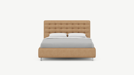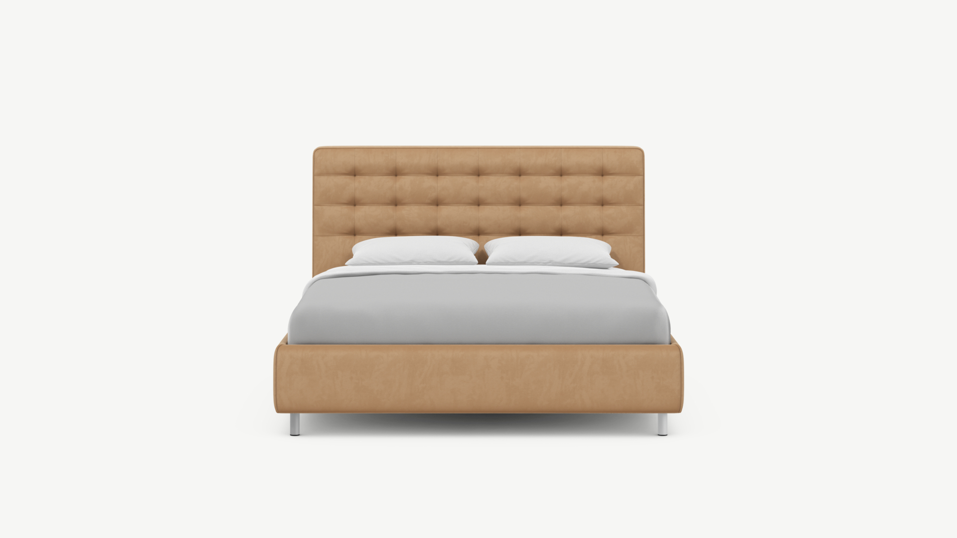 Оформите образ кровати, выбирая обивочный материал, который подчеркнет звучание Вашей спальни и отразит Ваш вкус. Обратите внимание на однотонный гладкий велюр, который усиливает объемную фактуру стежки.