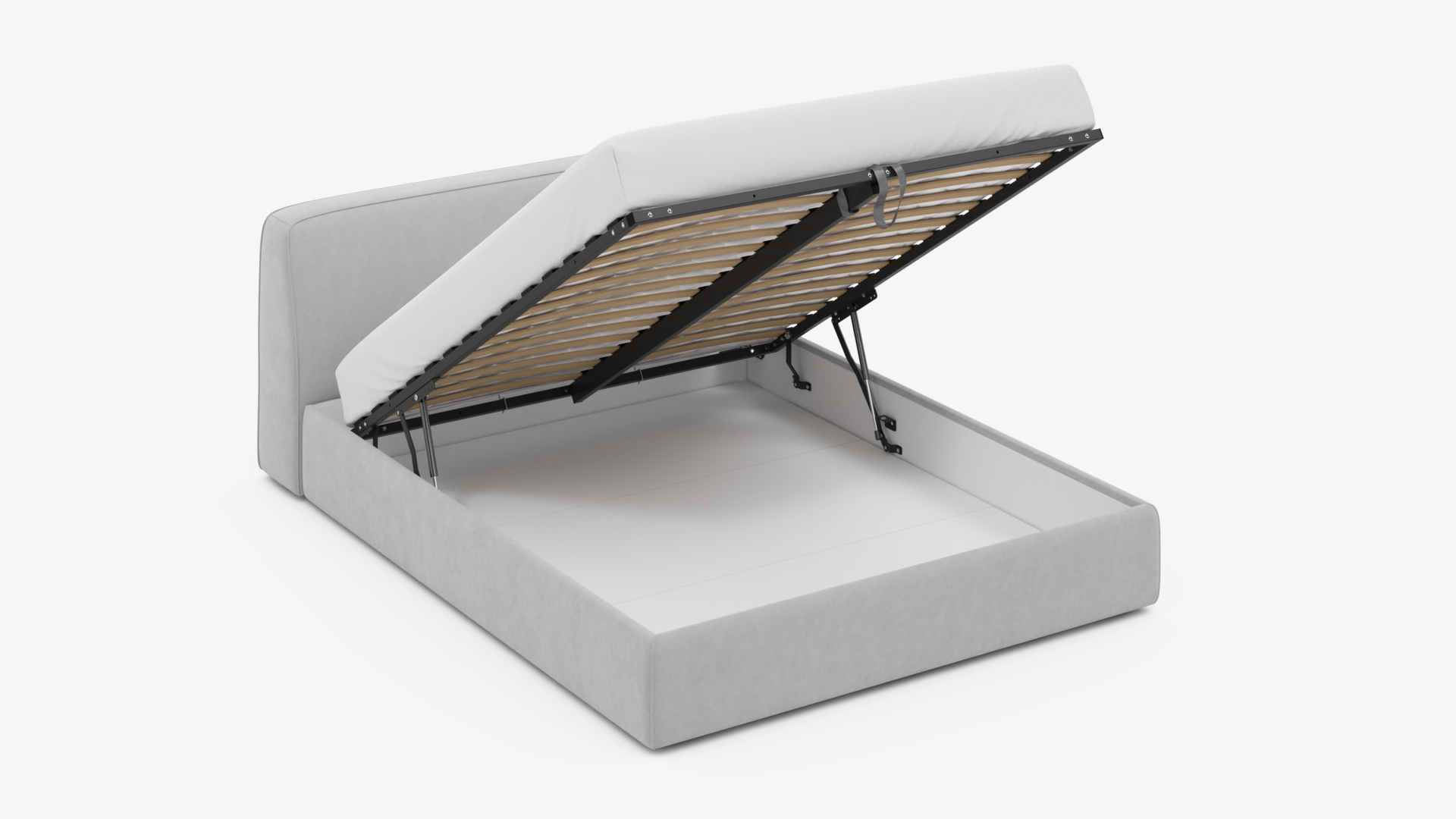 - Скрытая под основанием вместительная емкость без внутренних перегородок позволяет использовать всю площадь подкроватного пространства для хранения вещей.