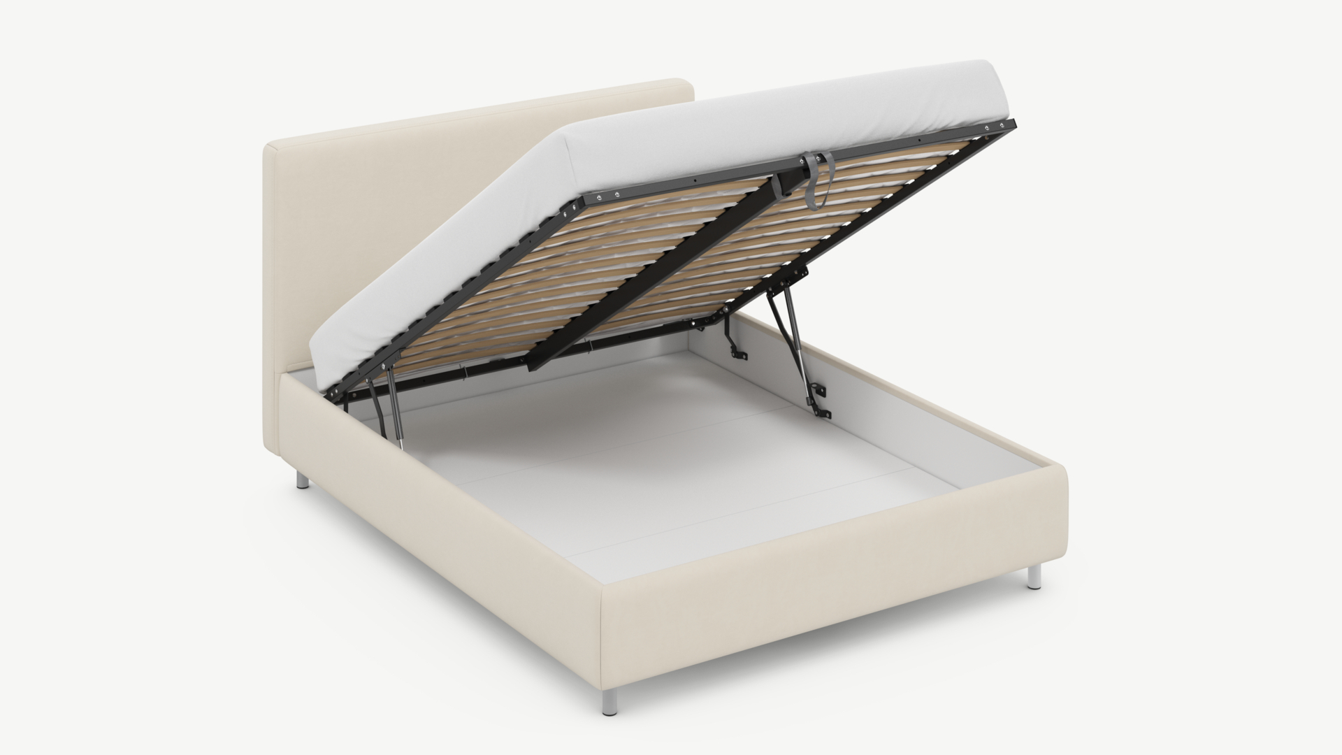 - Скрытая под основанием вместительная емкость без внутренних перегородок позволяет использовать всю площадь подкроватного пространства для хранения вещей.