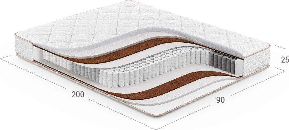 Матрас, в основу которого положен независимый пружинный блок (НПБ). Обратите внимание: чем большее количество пружин приходится на спальное место, тем точнее оказывается поддержка спины, а значит, более комфортным становится матрас и Ваш сон.