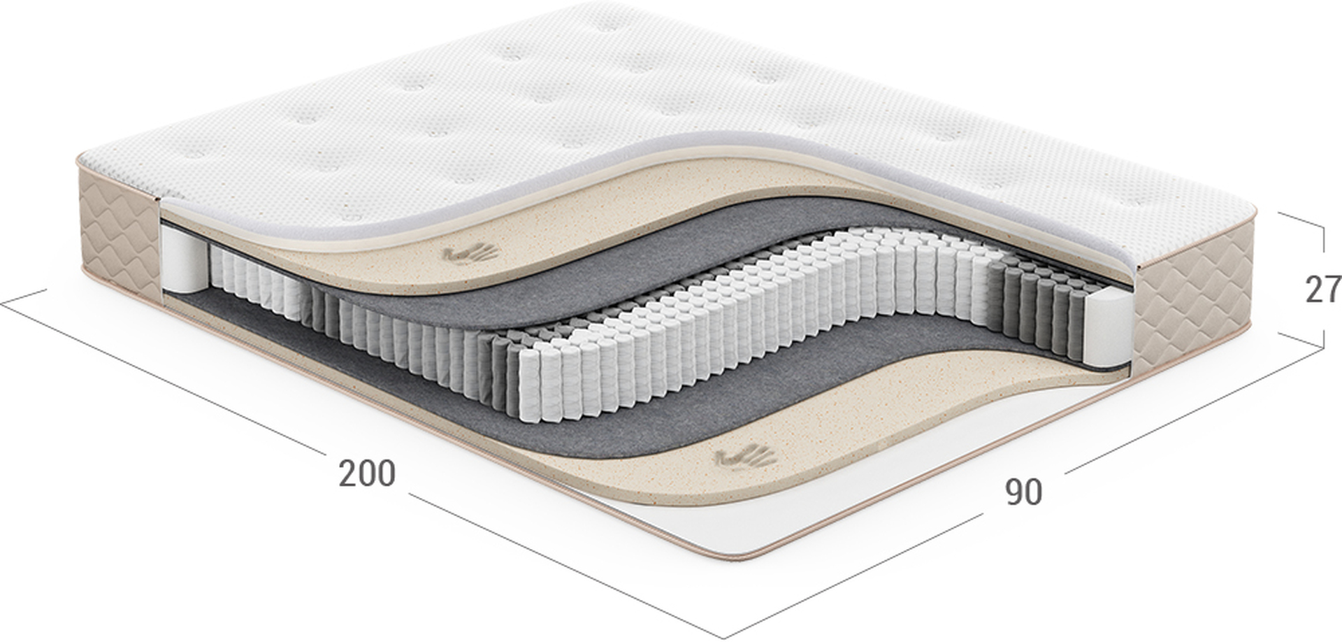 Повышает жесткость и плотность спального места, а также обеспечивает оптимальный воздухообмен благодаря объемной структуре материала. Улучшает эксплуатационные показатели матраса, не давая пружинному блоку механически воздействовать на комфортные слои.