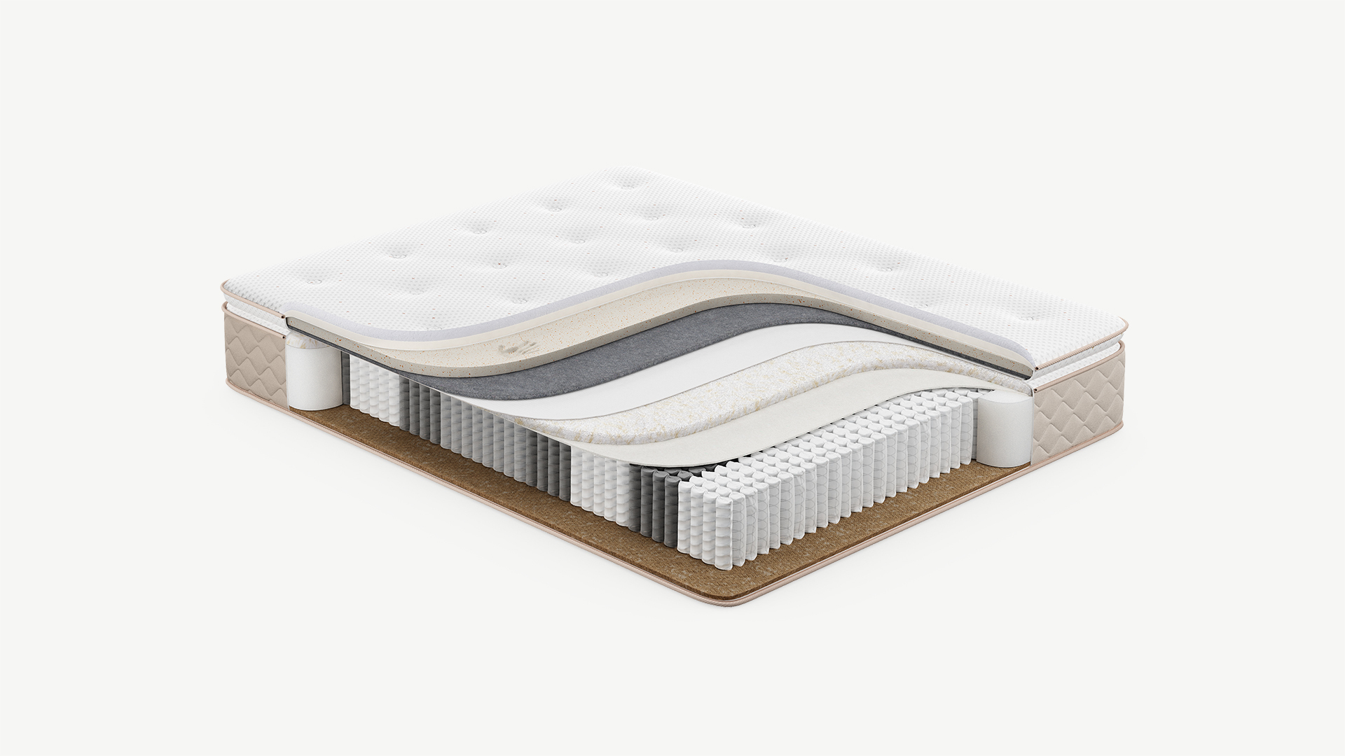 Надежно изолирует комфортные слои от соприкосновения с пружинным блоком и защищает материалы наполнения матраса от износа.